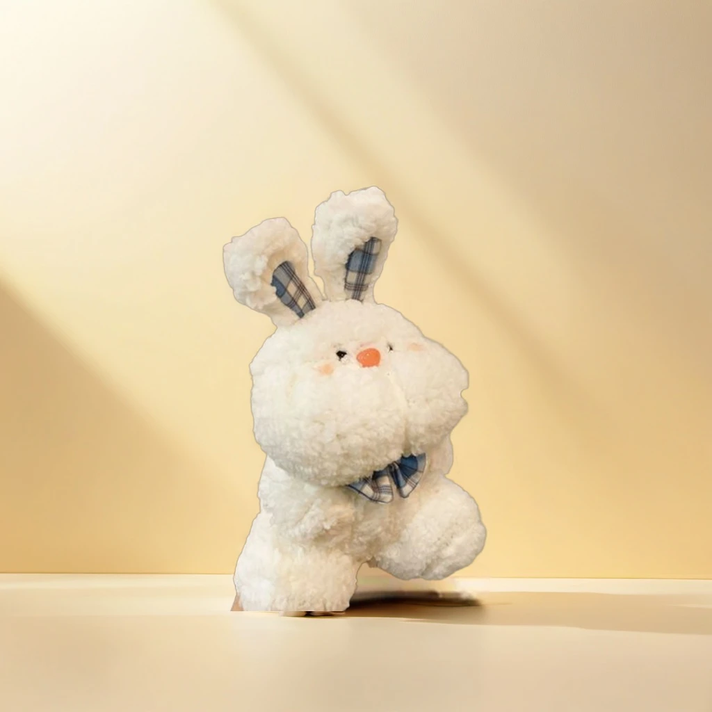 Meet the Fluffy Bunny Plush, an enchanting toy crafted for cuddles and comfort. Made with plush white fabric, the bunny boasts a delightful fluffy texture, perfect for squeezing and embracing. Its ears lined with plaid fabric add a charming touch of elegance, while the cute orange nose and plaid bow tie accentuate its playful character. Ideal for children and adults alike, this plush toy offers a sense of warmth and joy in nurseries, living rooms, or as a gift. Enjoy the comforting embrace of this squeezable companion.